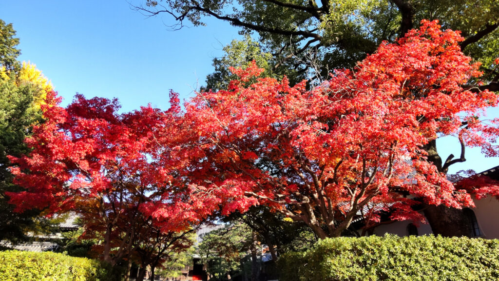 櫨並木と同様に、このお寺も久留米では有名な紅葉の名所です。別名「もみじ寺」とも呼ばれています。