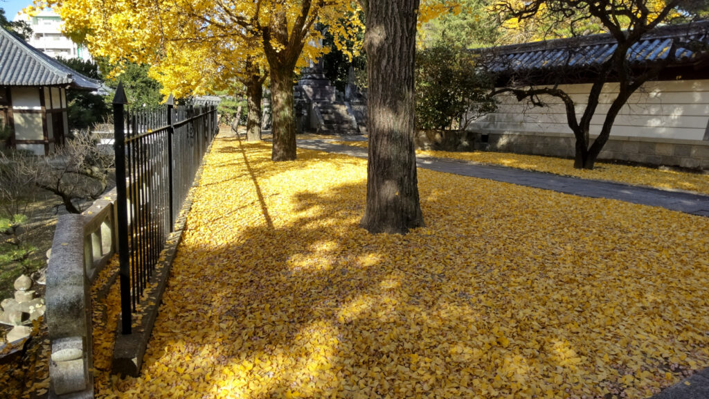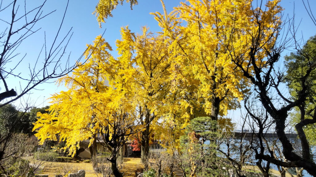 もみじとイチョウの木がありますが、どちらも大変綺麗です。ただ土曜日にもかかわらず、人影はまばらでした。