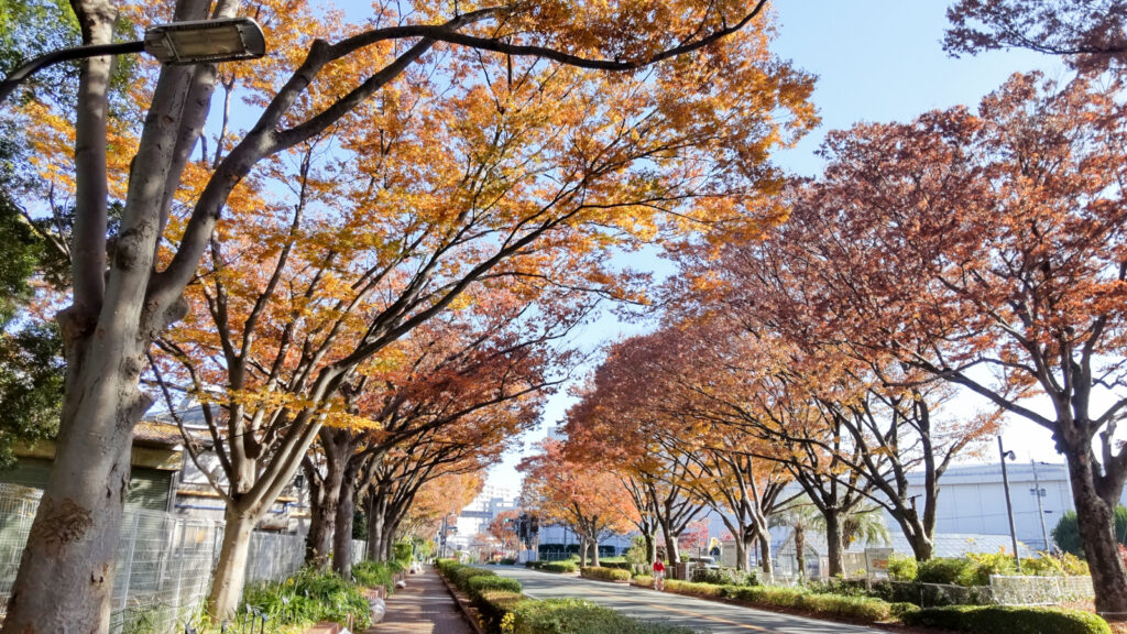 梅林寺からブリヂストン通りを通って久留米城跡へ向かいます。ブリヂストン通りにはケヤキ並木があって本来 紅葉も綺麗なのですが、残念ながら少し時期が過ぎているようでした。