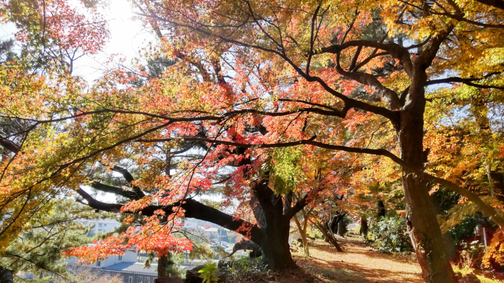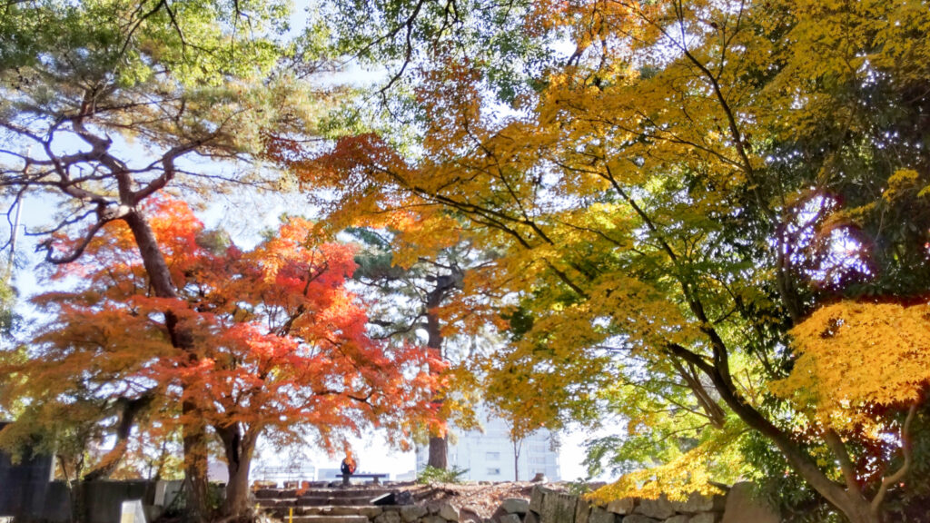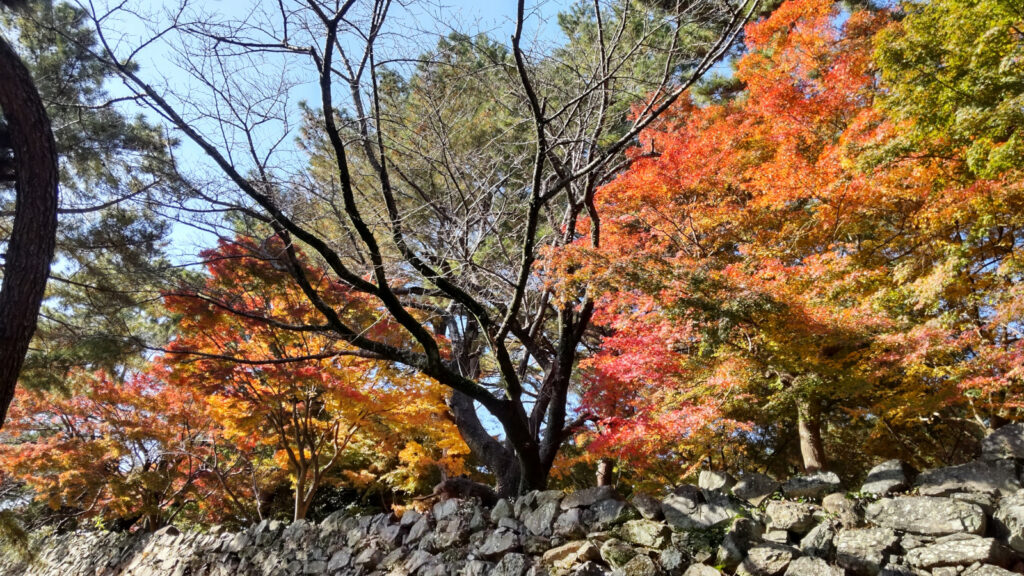 今回は紅葉を見に来たのですが、石垣上にもみじの木が何本も並んで植えられていて、紅葉も結構見応えがあります。