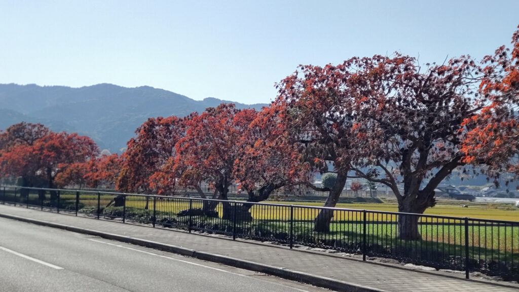 しかし、バスのダイヤを見たら ちょうど良い時間のバスが無くて、次の目的地を柳坂曽根の櫨並木に変更しました。