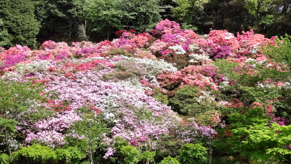ここで意外と知られていない情報を紹介します。ツツジと言えば 後述している「久留米森林つつじ公園」が有名ですが、実は高良山の中腹に多くのツツジが植栽されている場所があります。